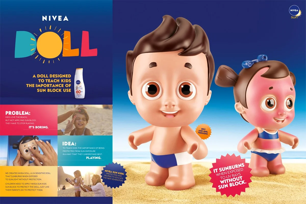 Nivea Doll is a toy that is sensitive to UV rays and turns red when exposed to the sun in order to help children learn about the importance of wearing sunscreen, apart from making parents’ lives easier.